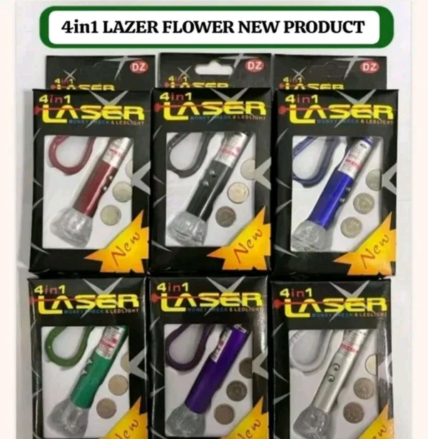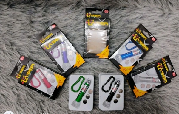 4 In 1 Laser Pointer Torch Led Lights With Hook, Multicolour.