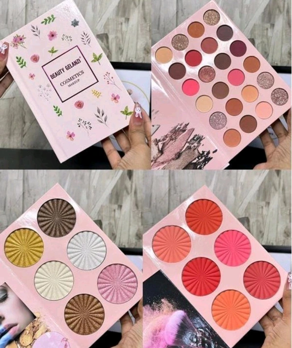 Beauty Gelanzi Professional Luxury Makeup Book,Palette 4 Set in 1 Book, 21 Eyeshadow Colours and 6 Highlighters,6 Blusher Contour,7 box Bronzer powder,Pink Floral Design