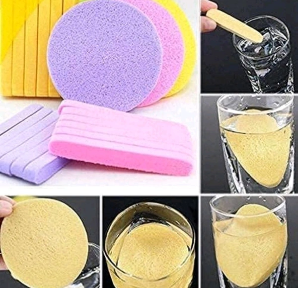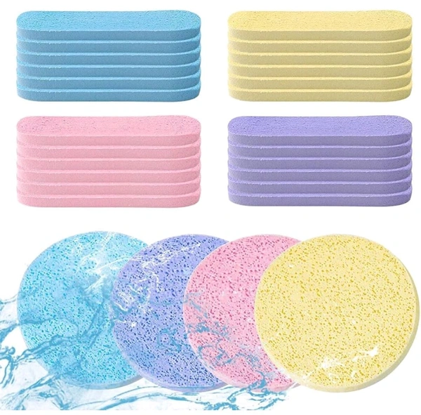 Facial Sponge Compressed Face Cleansing, Face Cleaning Sponge Pads, Makeup Removal Sponge Pad Exfoliating Wash Round Face Sponge yellow (PACK OF12)