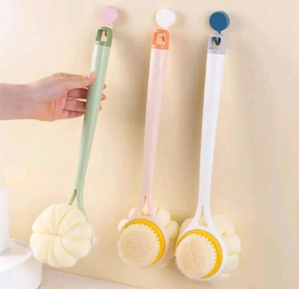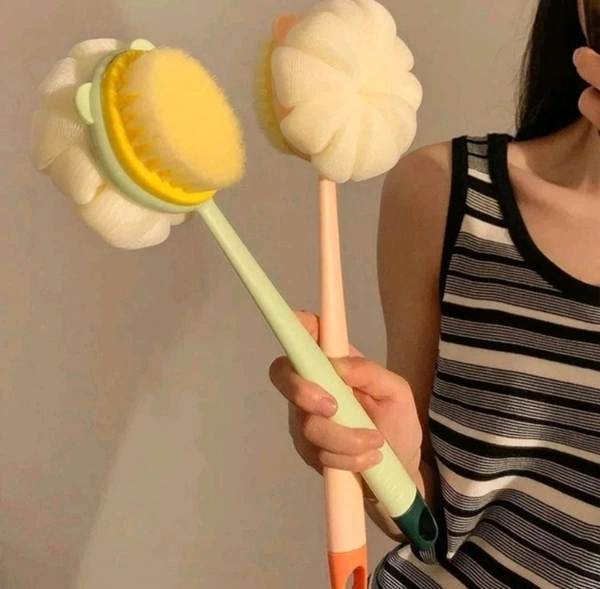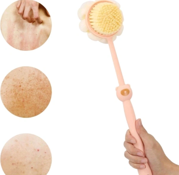 Heavy 2 IN 1 Bath Body Brush2 IN 1 Back Body Bath Brush with Bristles and Loofah Back Scrubber with Curved Long Handled for Skin Exfoliating Bath, Massage Bristles Suitable for Wet or Dry, Men and Women