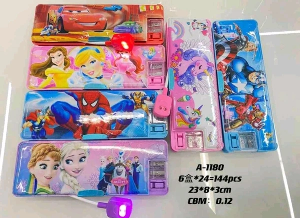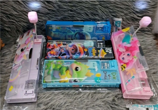 Plastic Multipurpose Magnetic Pencil Box With Led Lamp Light.