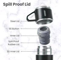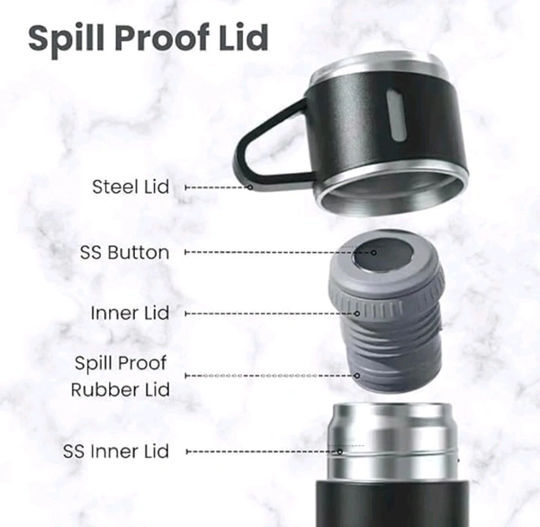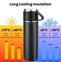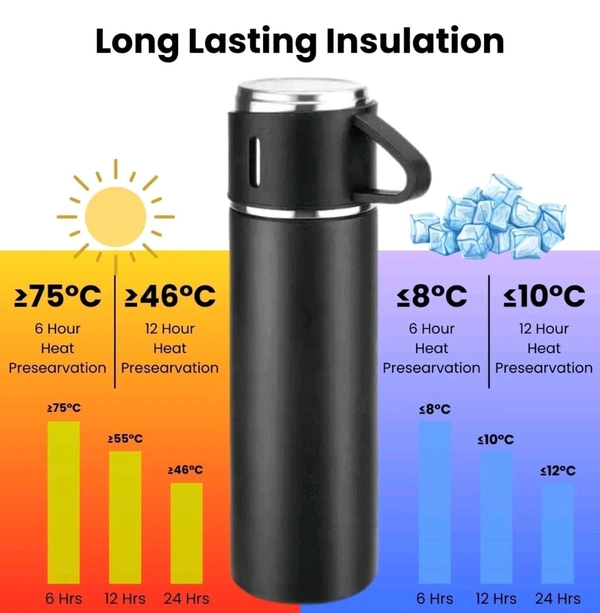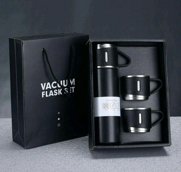 Vacuum Flask Set with 2 Cups, Double Wall Stainless Steel Thermo 500ml Vacuum Insulated Bottle Water Flask Set with 3 Cups Gift Set with Two Cups Hot & Cold (Multicolor)